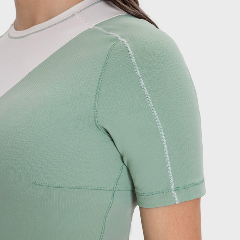 Ribbed Color Blocking Athletic Short Sleeve